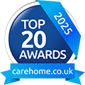 We are very proud to have received the carehome.co.uk award as one of the UK's Top 20 Recommended Small Care Home Groups in the UK for eleven years in a row - 2026,25,24,23, 22,21,20,19,18,17 and 2016.